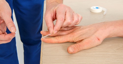 Du har sprunget en strækkesene yderst på fingeren, derfor hænger fingerens yderstykke og kan ikke strækkes ved egen kraft. Det er det, man kalder en dropfinger.