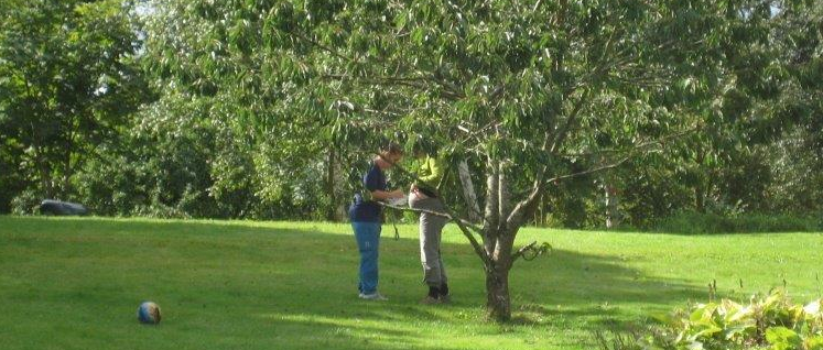 Vores jordemoder ankommer kl 10.40. dejlig kvinde. Det er næsten kendt jordemoder, da jeg er så heldig at få min konsultationsjordemoder fra Frejs graviditet, og vi går så fint i spænd. Jeg går selv ud og tager imod taxaen, er helt overrasket over mit overskud, men det er bare helt fint. Jeg har endda overskud til at joke med at jeg nu reddede hende fra en kedelig dag på dagvagt, så hun i stedet kunne komme her ud til hjemmefødsel. Vi går ind og lige får rigget til omkring fødekarret og lavet en status. Jeg er 5-6 cm åben og vævet er tyndt og fint, det bliver ikke en midnatssceance. Hun er helt med på at jeg bliver i haven, så længe som jeg selv har lyst. Og det har jeg lyst til. Så jeg skynder mig at få tøj på igen inden den næste ve, og smutter ud i det grønne. Jeg fortsætter turene rundt i haven, fortsætter sangene, mens jeg hænger op ad skiftevis flagstang, rutsjebane og frugttræer med grene i den rette højde. -og har det bare så godt! Imens drikker Kenneth og jordemoderen kaffe på terrassen. Det er lige som det skal være!